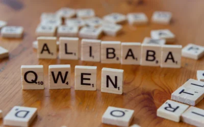 • A wooden table topped with scrabble tiles spelling the word alibaba queen